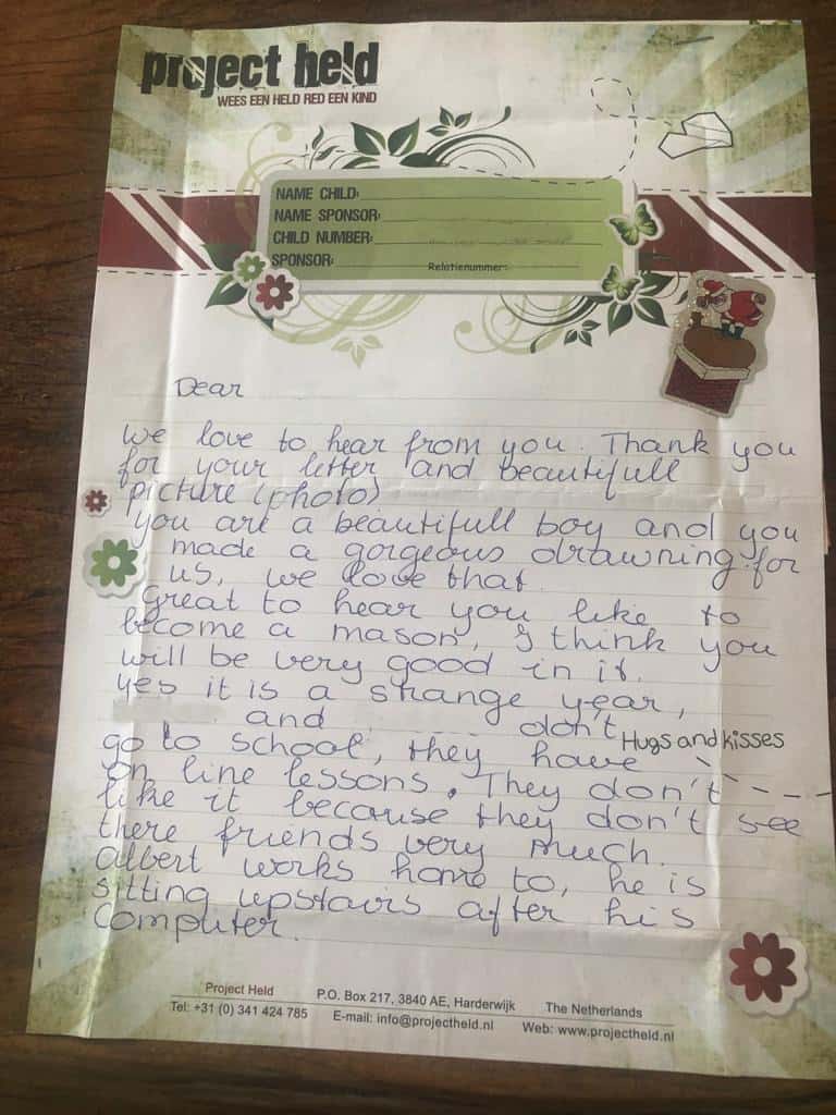 We would therefore like to ask you to keep writing or to send a photo or card. If your sponsor number and the child's reference number and name are on it, we can process it in our system and it will go to the correct project. If you want to do something special, we ask you to do this for all children. So that no children are favored or spoiled extra. If you have any questions after this message, you can of course always contact us via info@projectheld.nl