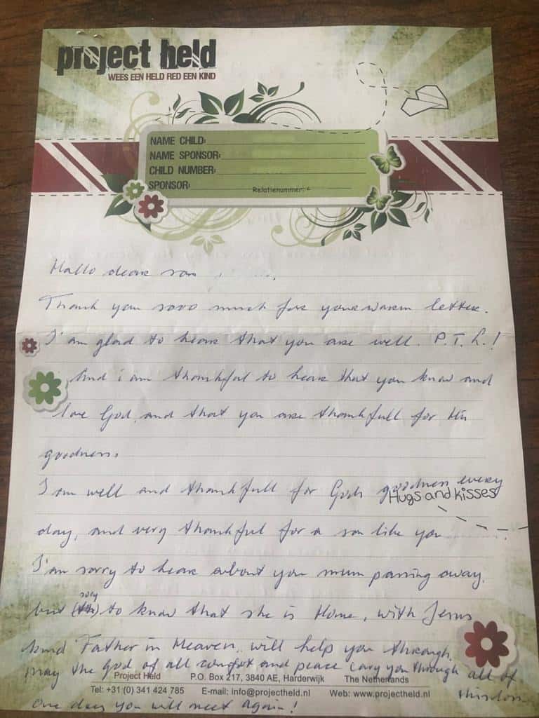 Something that also means a lot to the child is receiving a letter or card from the sponsor. The sponsor then gets a face, a character and the children feel loved and special. Since these children are often rejected or rejected, this also helps in restoring their identity in who they are.